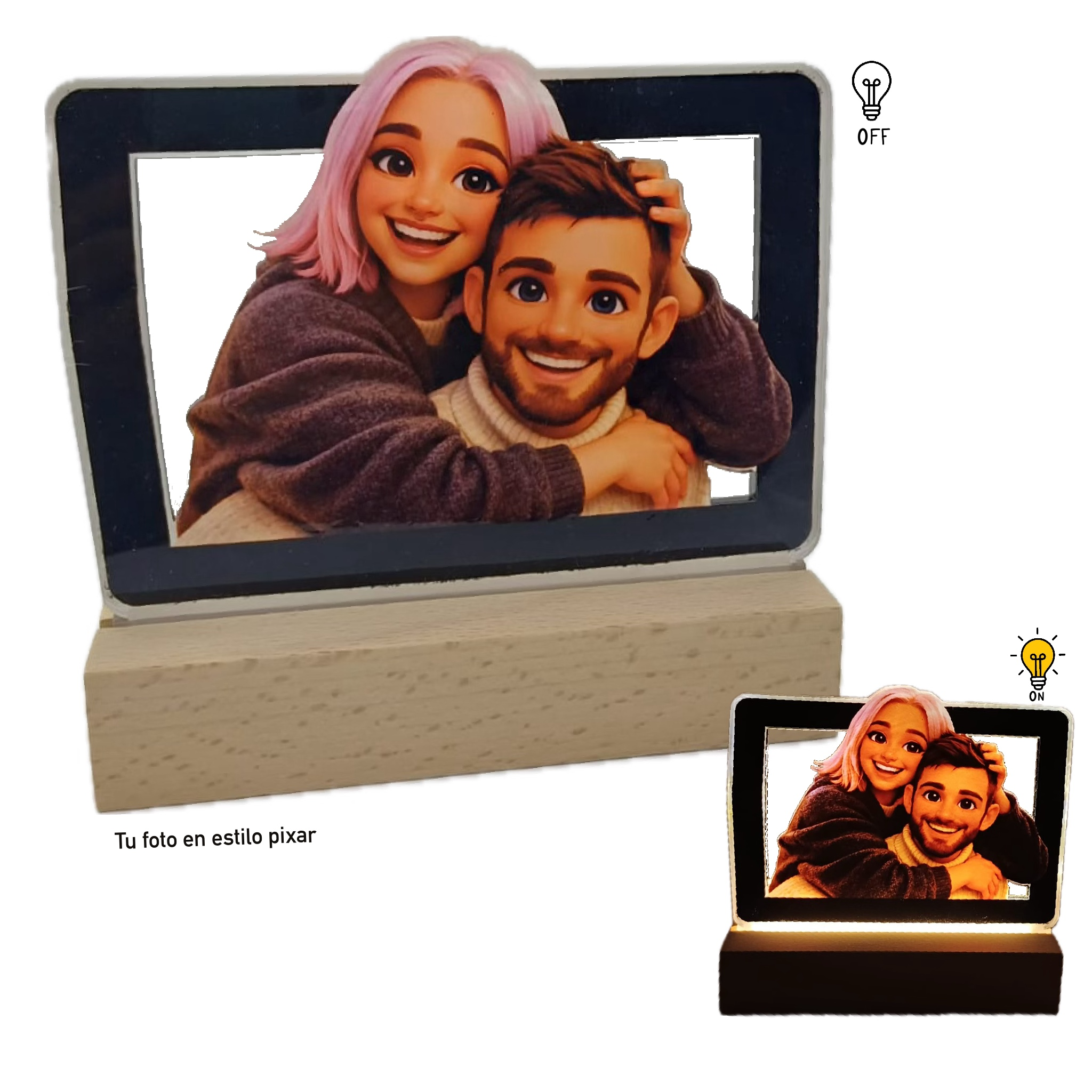 25,50€ IVA incluido Añadir al carrito25,50€ IVA incluidoLámpara personalizada 3D en metacrilato con base de madera natural. Convertimos tu foto en un diseño único iluminado, creando un regalo original, emotivo y perfecto para cualquier ocasión.